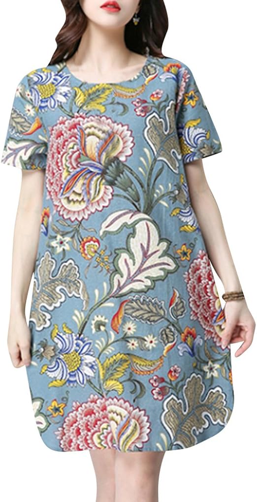 Lopily Frauen Grosse Grossen Blumenmuster Kleider Boho Stil Ubergrosse Sommerkleider Blumendruck Knielang Kleid Kurzarm Kleid Tunika Swing Kleid Amazon De Bekleidung