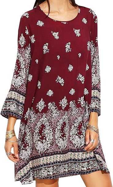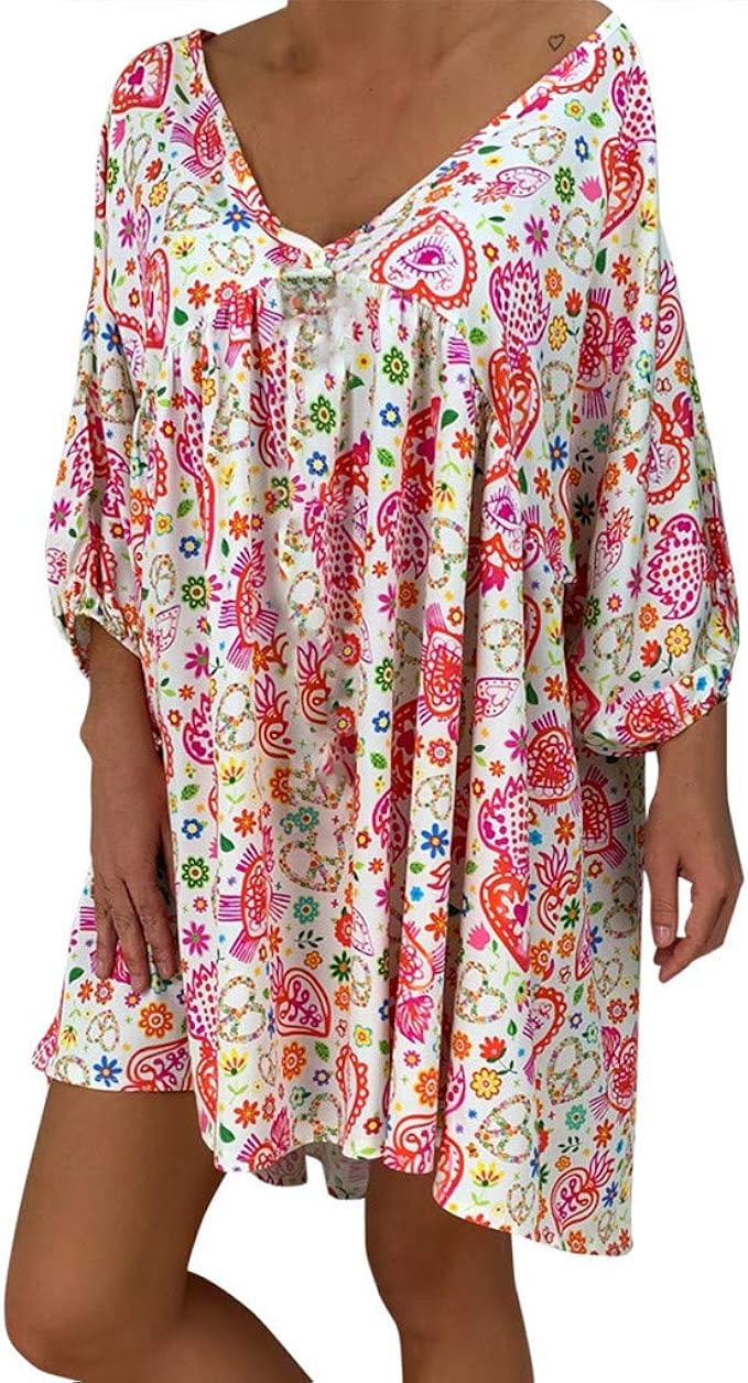Lopily Tunika Kleid Grosse Grossen Blumenmuster Kleider Boho Stil Ubergrosse Sommerkleider Blumendruck Knielang Kleid Kurzarm Kleid Casual Strandkleid Amazon De Bekleidung
