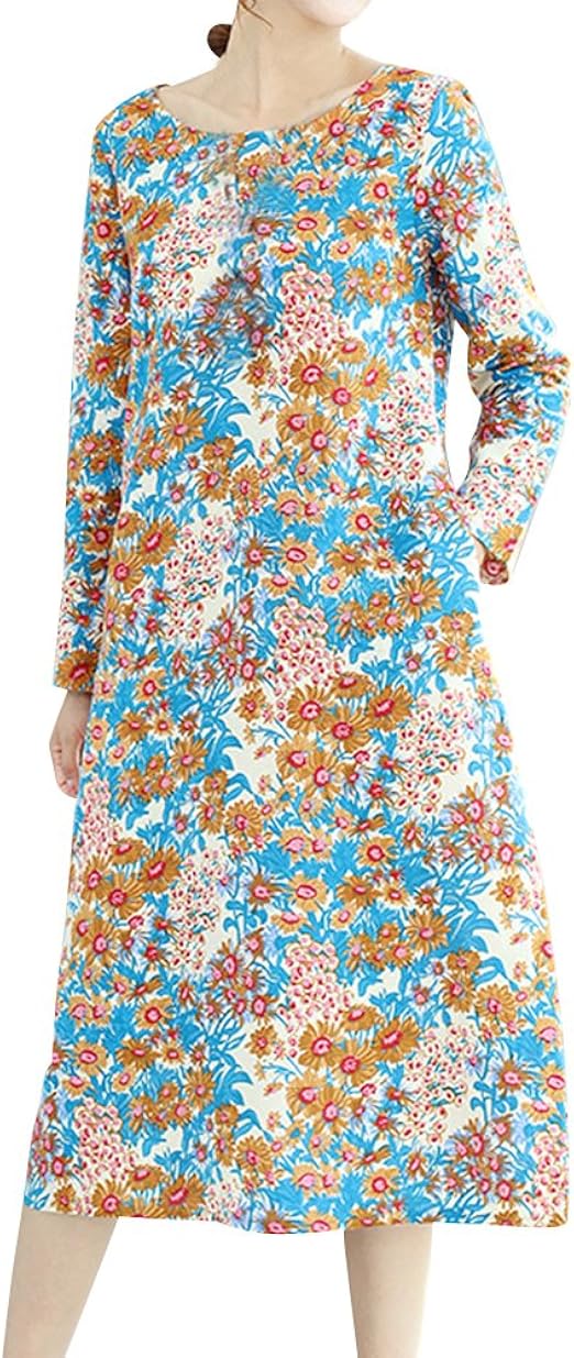 Geilisungren Damen Casual Rundhals Langarm Maxikleid Polka Dots Patchwork Knopf Tasche Lose Baumwolle Leinen Kleider Grosse Grossen Lang Tunika Tshirt Kleid Amazon De Bekleidung