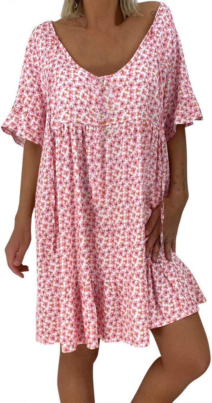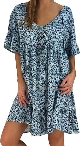 Sommerkleider Damen Kurzarm Kleider Grosse Grossen Damen Lose Drucken Kurzarm Minikleid Sommerkleid Saum Baggy Kaftan Shirtkleid Loses Strandkleider Tunika Kleid Amazon De Bekleidung