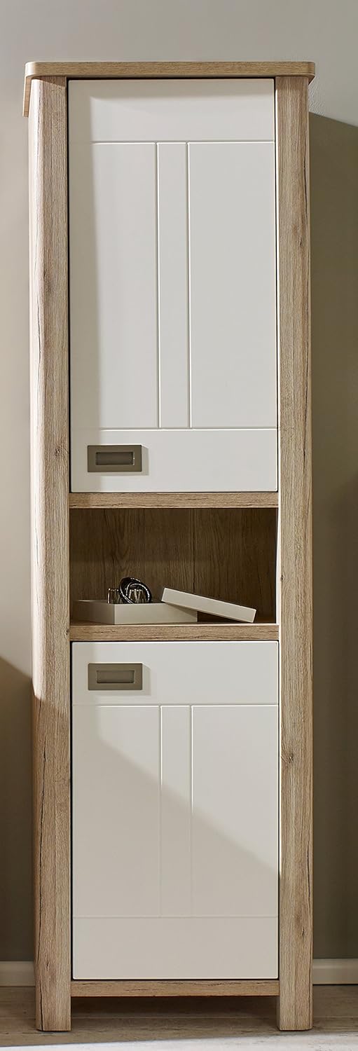 Front Weiss Matt Mit Offenem Fach Und Viel Stauraum Trendteam Badezimmer Hochschrank Schrank Seven 55 X 184 X 35 Cm In Korpus Eiche San Remo Hell Dekor