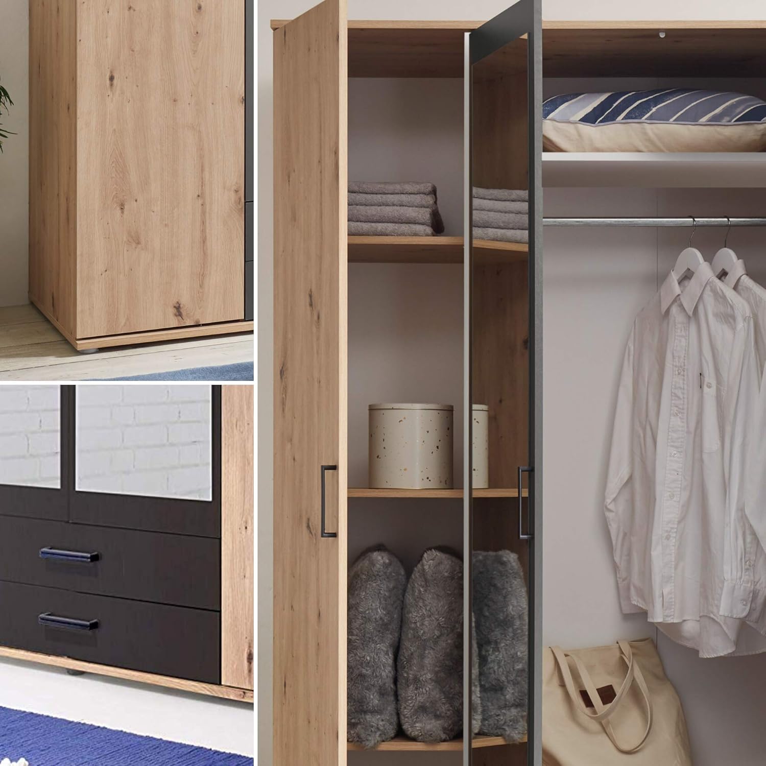 KARL Eleganter Kleiderschrank 3türig mit viel Stauraum Vielseitiger Drehtürenschrank in Sonoma Eiche Optik mit Spiegeltür 1 x 195 x 55 cm (B/H/T) 3,3 von 5 Sternen 358 156,17 € 156,17 € 186,37 € 186,37€. Finden Sie TopAngebote für Schrank 300 cm viel Stauraum Glas & Holz bei eBay Kostenlose Lieferung für viele Artikel!. Griffloser Drehtürenschrank mit viel Stauraum Mit seinem durchdachten Design bietet der Kleiderschrank TÜBINGEN alles, was Sie von einem Schlafzimmermöbel erwarten können Doch auch die Optik des sechstürigen Modells aus Holzdekor gefällt dank Farbgebung in Alpinweiß.