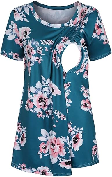 Ashui Damen Umstandstop Schwangerschaft Mama Kleidung Hals Kurzarm Tops Frauen Umstandsmode Unterwasche Umstands Still T Shirt Lagendesign Rundhalsausschnitt Top Oberteil Fur Schwangere Amazon De Bekleidung