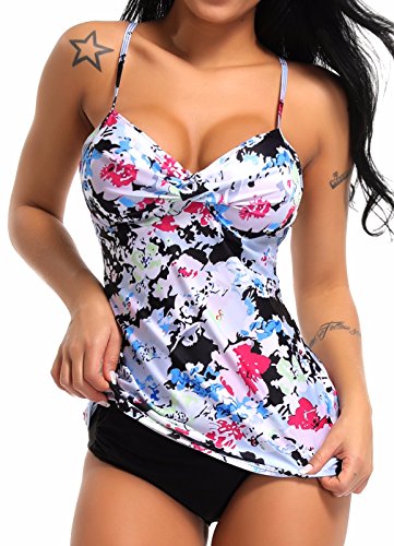 Alove Damen Tankini Set Blumen Print Mit Bugel Tankini Figurumspielend Tankini Push Up Tankinis