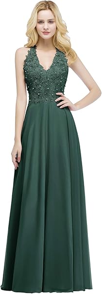 Misshow Damen Kleider V Ausschnitt Armellos Elegant A Linie Abendmode Lang Abendkleid Grun 46 Amazon De Bekleidung