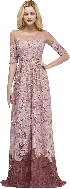 Babyonlinedress Damen Cocktail Brautjungfer Chiffon Lang Kleid Spitzen Abendkleid Maxilang Rosa 46 Amazon De Bekleidung