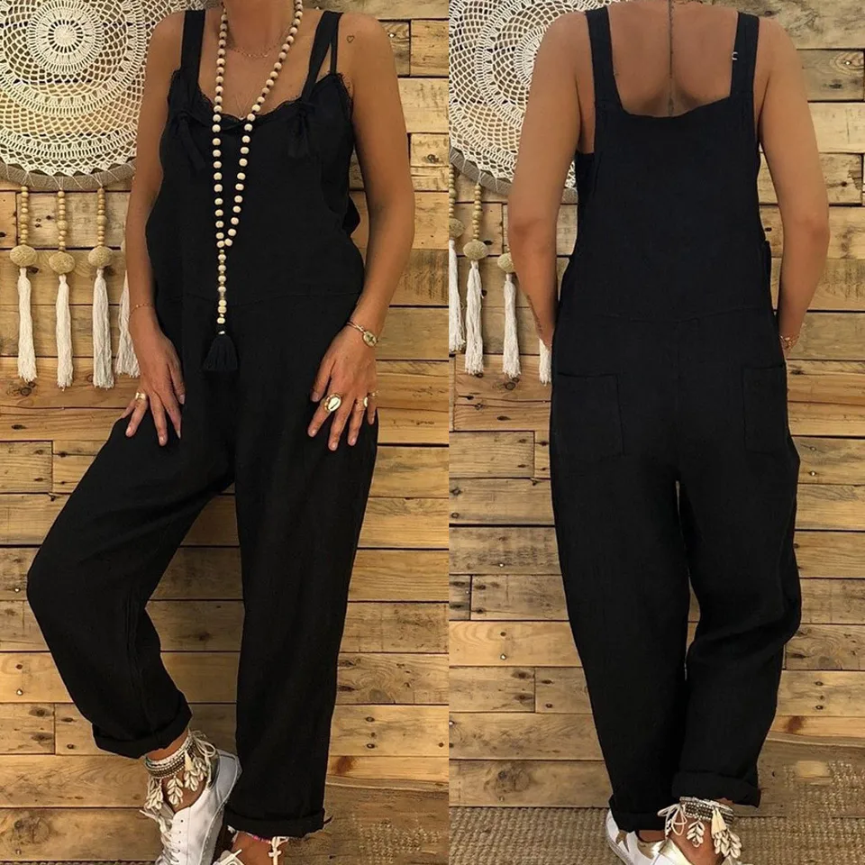 Zanzea Damenmode Armellos Overall Jumpsuit Weitem Bein Baumwolle Hosen Haremhose Ebay