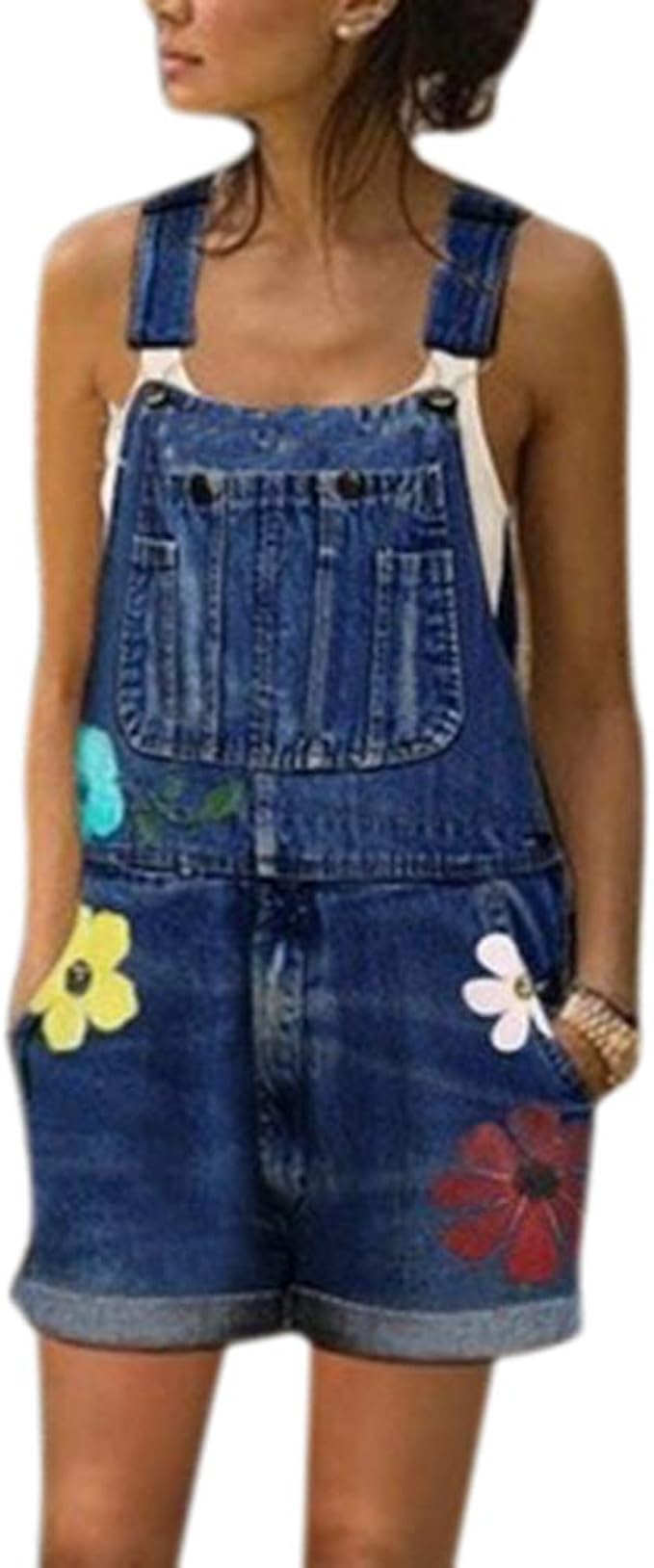 Latzhose Denim Short Damen Overall Mit Weitem Bein Jumpsuit Jeans Damen Overalls Hosen Amazon De Bekleidung