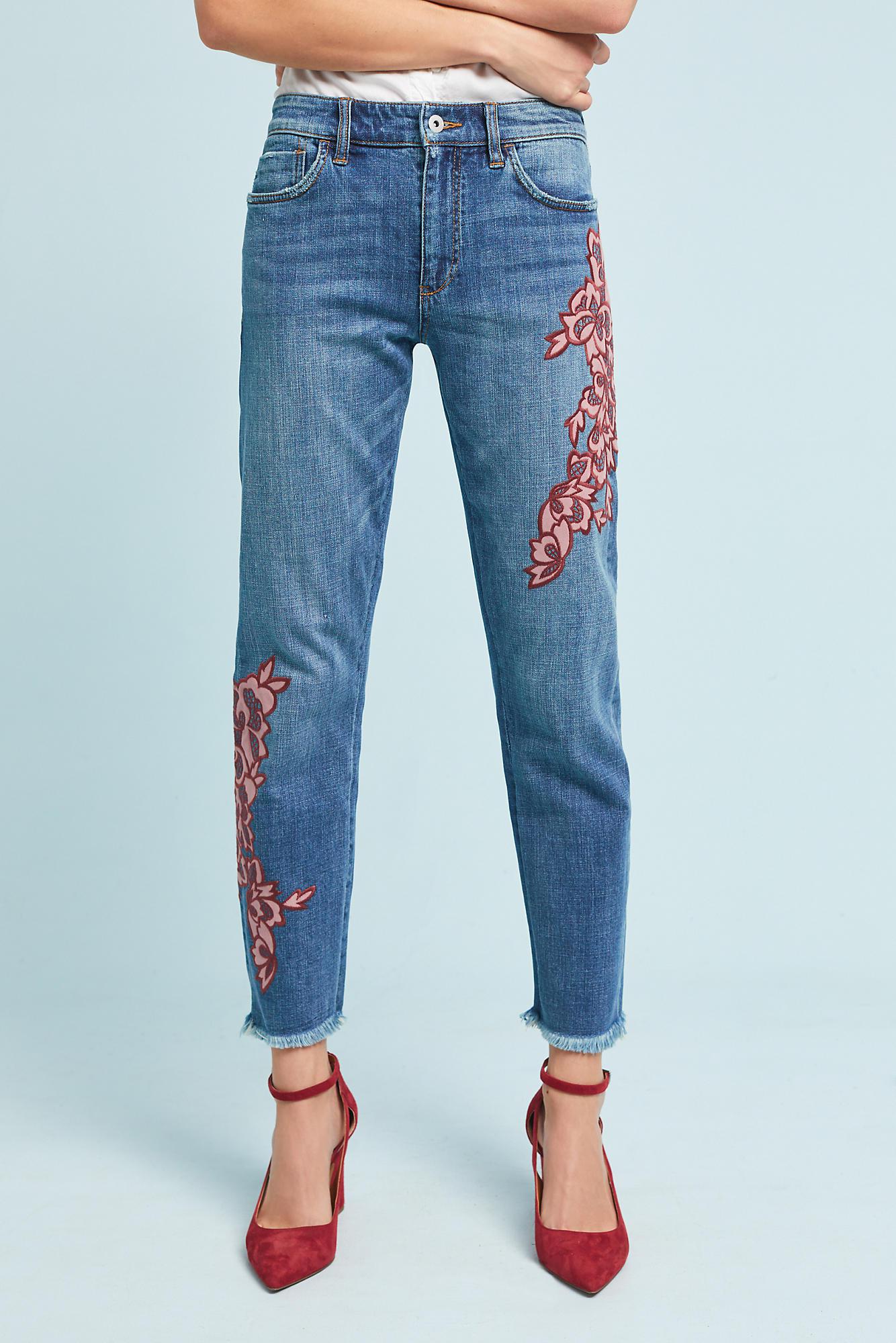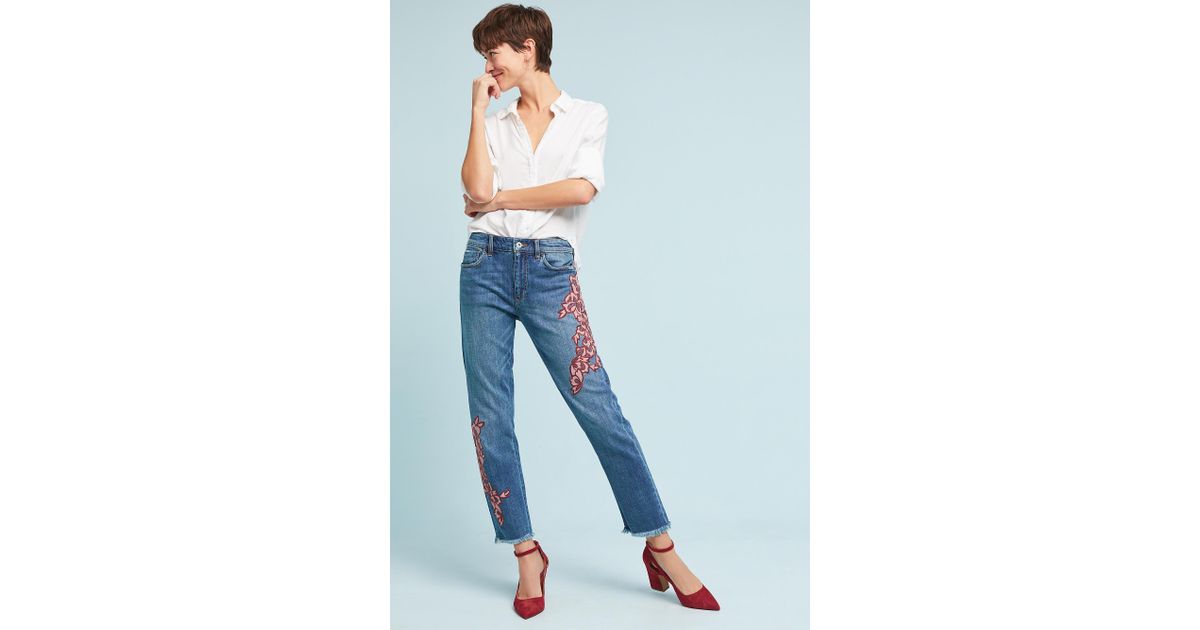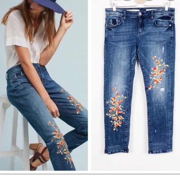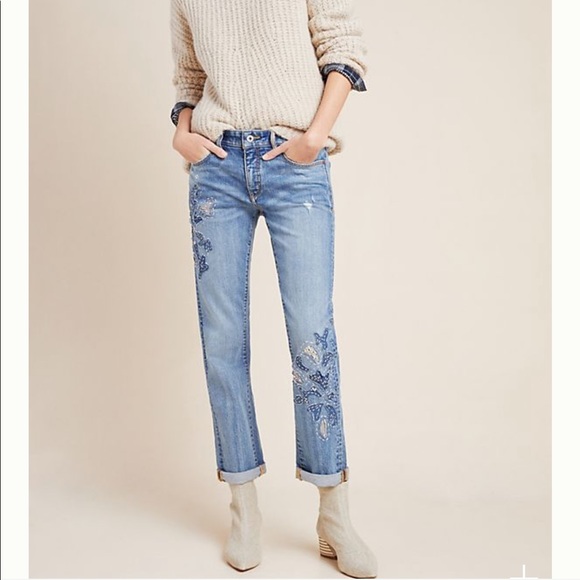 Anthropologie Jeans Pilcro Slim Boyfriend Embroidered Flower Jeans Poshmark
