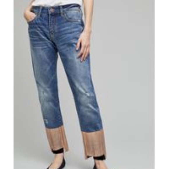 Anthropoligie Pilcro Slim Boyfriend Jeans W Silk Patchwork Cuff Sz 28 Ebay