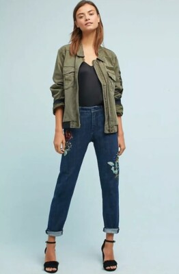 Anthropologie Pilcro And The Letterpress Embroidered Slim Boyfriend Jeans 25 Ebay