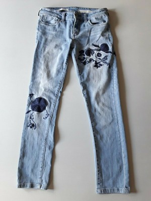 Anthropologie Pilcro And The Letterpress Slim Boyfriend Jeans Floral Sequins 25 Ebay