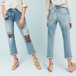 Anthropologie 168 Pilcro And The Letterpress Patched Slim Boyfriend Jeans Sz 25 Ebay