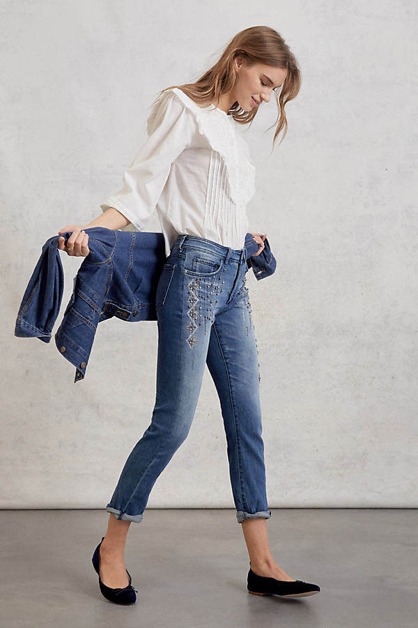 Pilcro And The Letterpress Pilcro Embellished High Rise Slim Boyfriend Jeans By In Blue Size 24 Shopstyle Distressed Denim