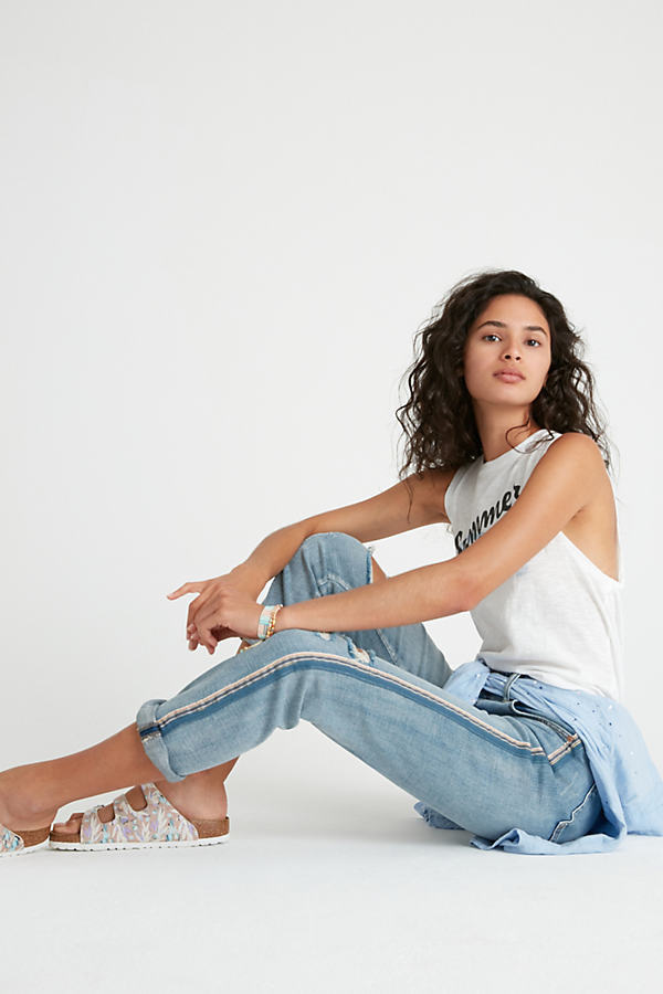 Pilcro And The Letterpress Pilcro Side Stripe Mid Rise Slim Boyfriend Jeans By In Blue Size 26 Shopstyle Distressed Denim