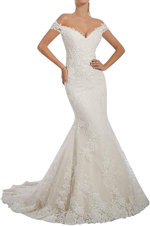 Songsurprisemall Damen Hochzeitskleider Meerjungfrau Off Shoulder Spitze Brautkleider Etuikleid Abendkleider Lang Amazon De Bekleidung