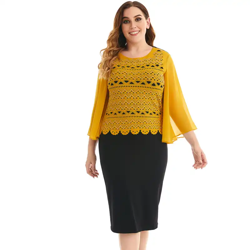 Plus Grosse Frauen Herbst Elegante Schosschen Business Casual Partei Buro Kleid Buy Buro Kleid Partykleid Plus Size Partykleid Product On Alibaba Com