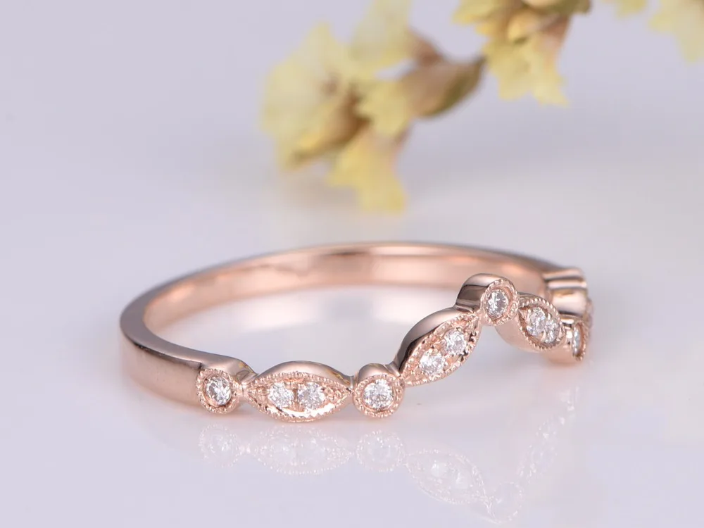 Wedding Ring Set Moissanite Rose Gold Engagement Ring Round 8mm Moissanite Ring Diamond Milgrain Band In Ring Verlobung Einzigartige Verlobungsringe Ehering