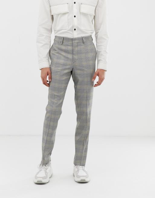 River Island Superenge Karierte Hose In Grau Asos