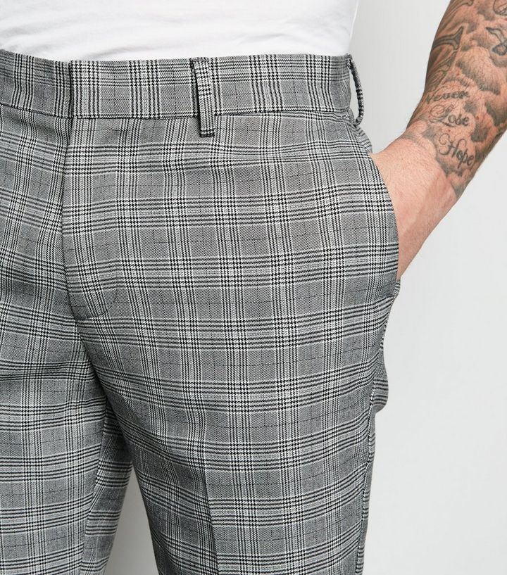 Karierte Anzughose In Grau New Look