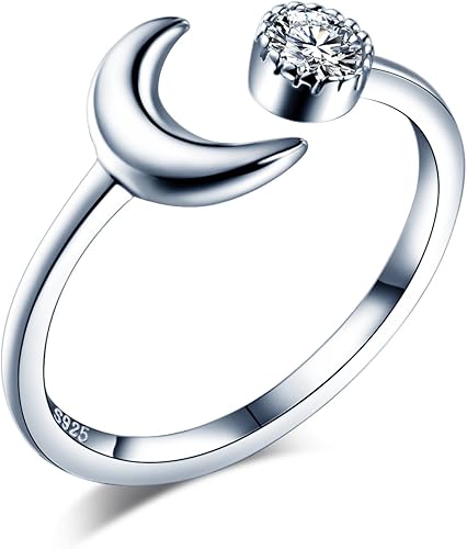 Cestbon Modisch Sonne Mond 925 Sterling Silber Zirkonia Offener Ring Verlobungsring Partnerring Verstellbar Grosse 51 Bis 56 Silber Verlobungsringe