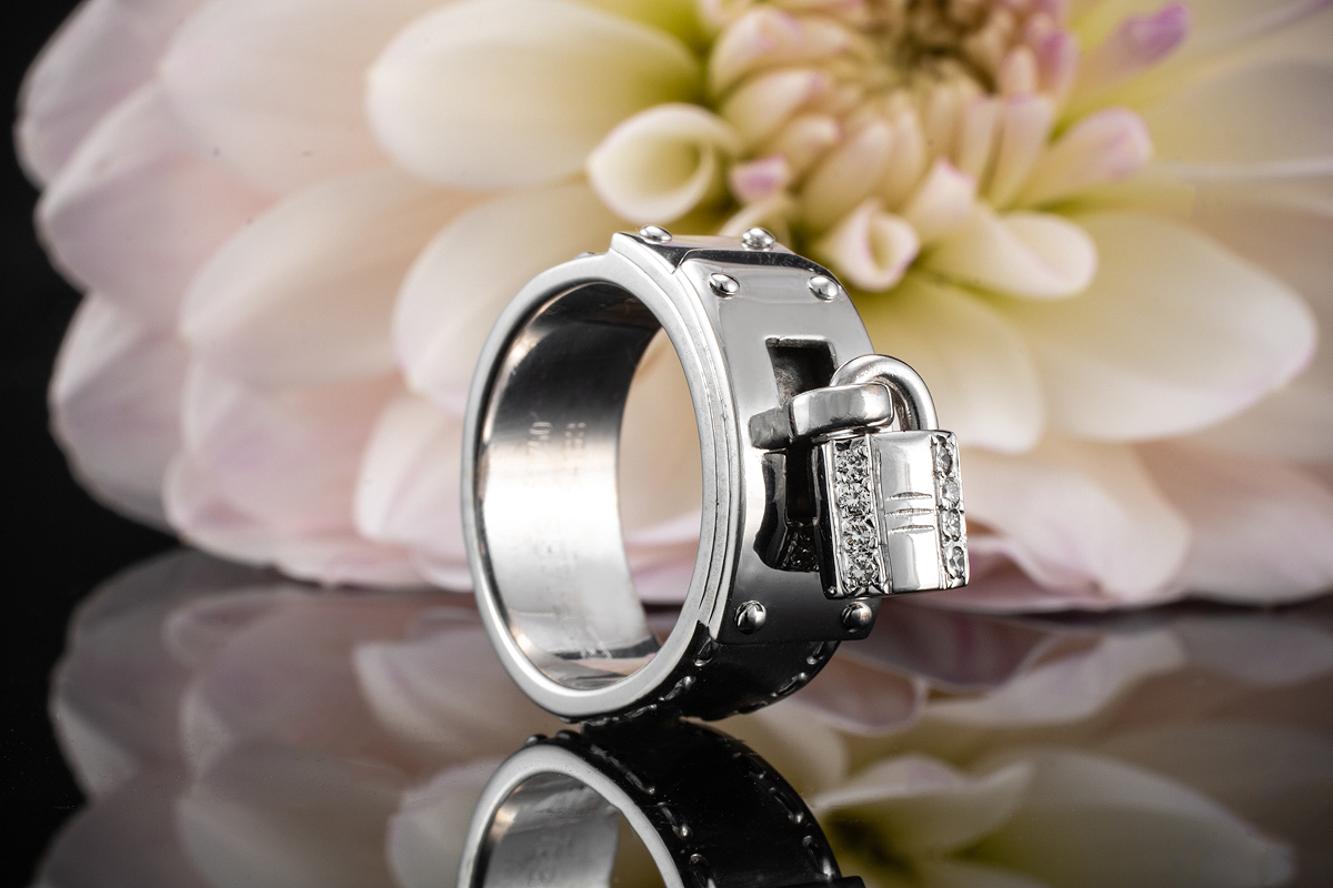 Hermes Paris Ring Kelly Schloss Mit Diamanten In 750er Weissgold Grosse 51