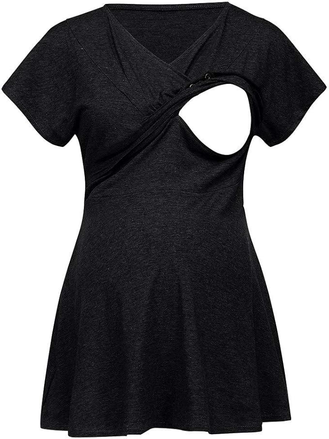 Pitashe Stillshirt Damen Umstands Stilltop Stilloberteil Doppelschicht Volltonfarbe Wild Kurzarm Knopf Rock Weich Elegant Umstandsmode Top T Shirt Lose Stillen Umstandstop Bluse Oberteile Shirts Amazon De Bekleidung