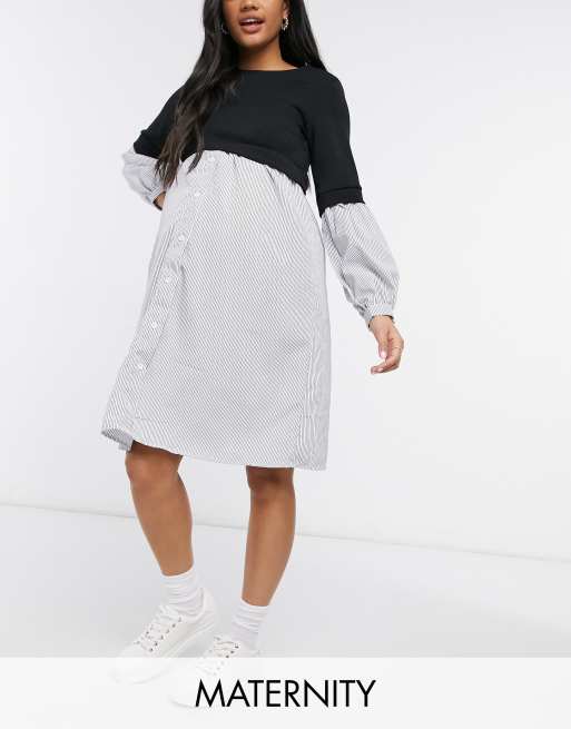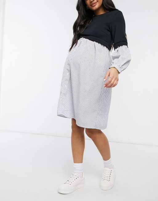 Mamalicious Umstandsmode Kombi Hemdkleid In Schwarz Und Weiss Mit Streifendesign Asos