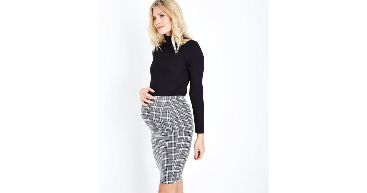 Umstandsmode Schwarz Karierter Bleistiftrock Aus Jersey New Look