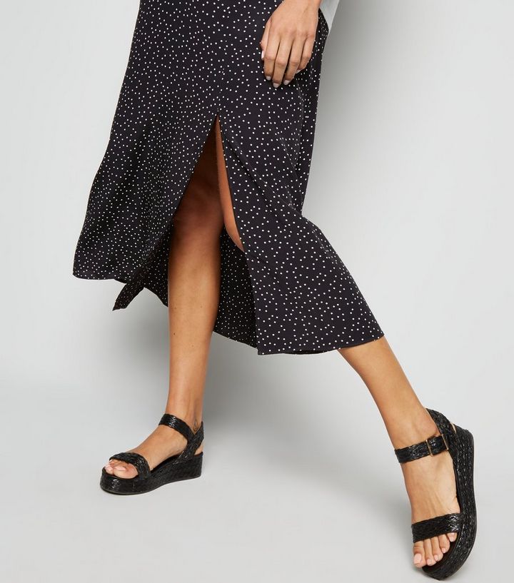 Umstandsmode Schwarzer Midirock Mit Punkten Und Seitenschlitz New Look