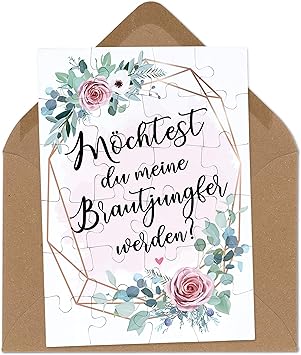 Owlbook Brautjungfer Fragen Rosa Blumenkranz Puzzle Mit Brief Umschlag Geschenke Geschenkideen Fur Brautjungfer Zur Hochzeit Verlobung Amazon De Spielzeug