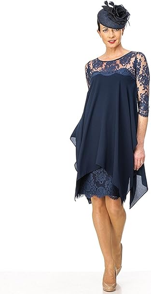 Dressvip Frauen Kleid Mutter Zeremonie Spalte Mi Armel Knielangen Spitze Dunkelblau Fur Hochzeit 44w Navy Amazon De Bekleidung