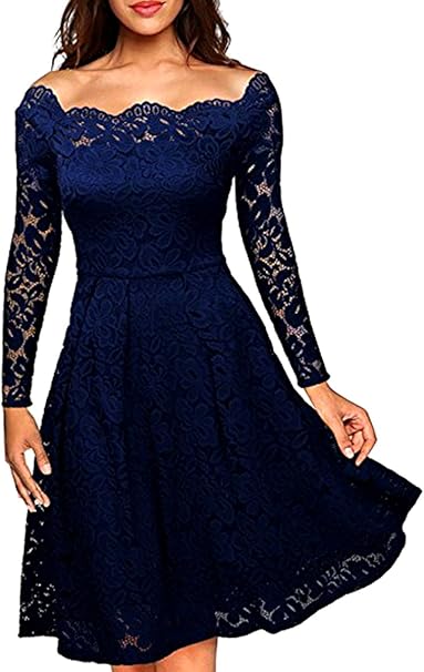 Meyison Damen Vintage 1950er Off Schulter Spitzenkleid Knielang Festlich Cocktailkleid Abendkleid Rockabilly Kleid Blau S Amazon De Bekleidung