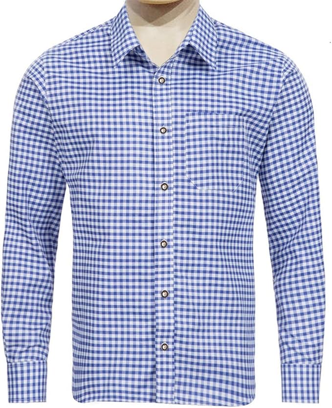 Trachtenhemden Moschen Bayern Herren Hemd Trachtenhemd Karohemd Langarm Kurzarm Kariert Wiesn Hemd Oktoberfest Freizeithemd Trachten Blau Bekleidung