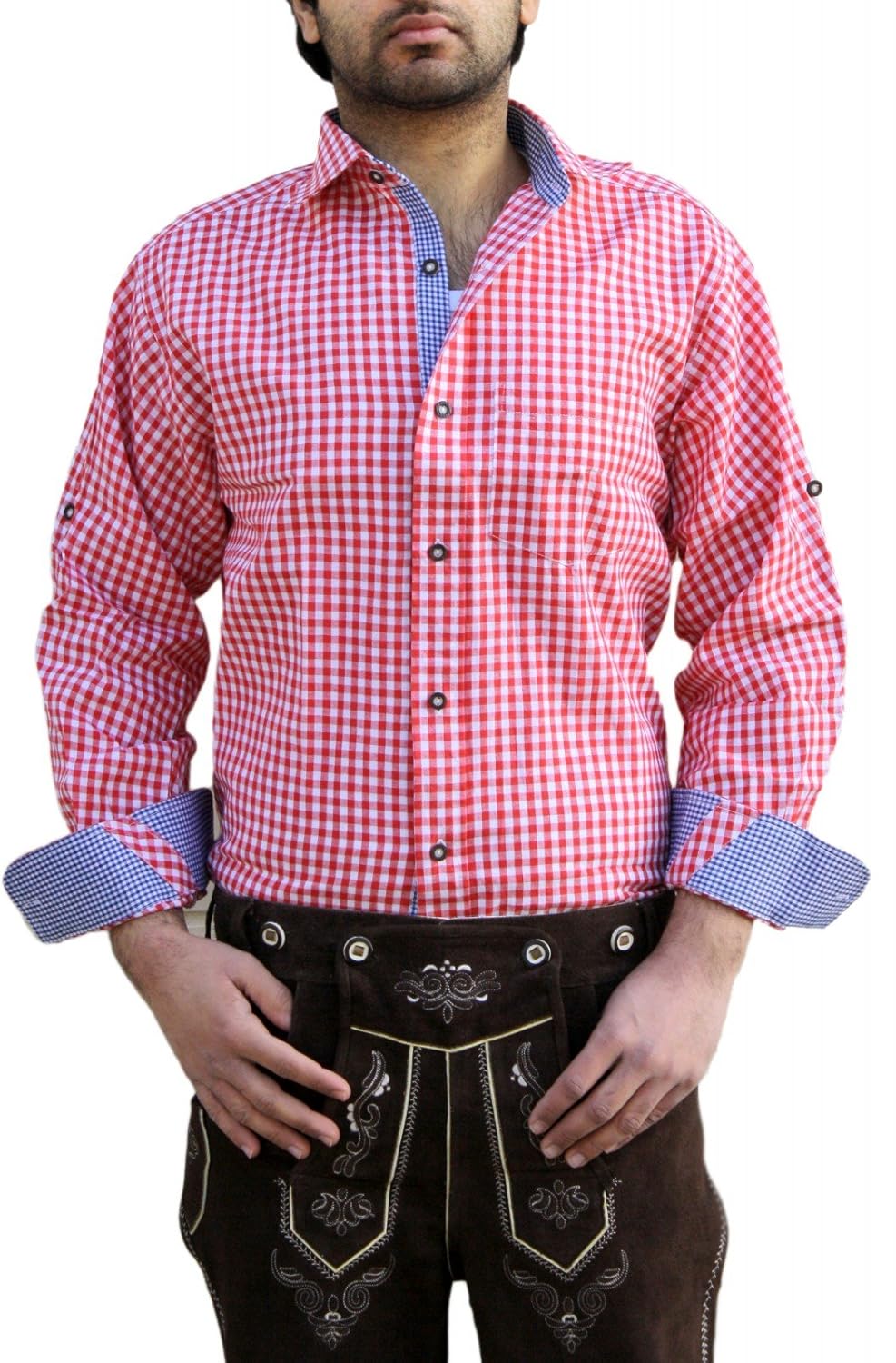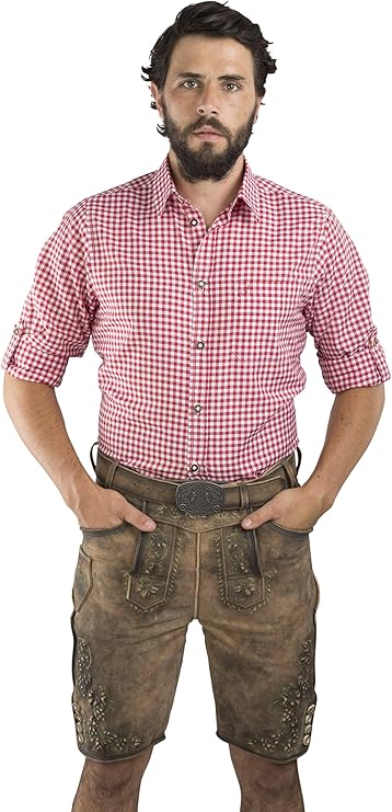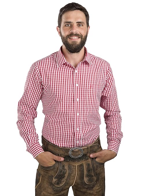 Shirts Trachtenhemd Hemd Mit Krempelarmel Oktoberfest Kariert Rot Clothing Shoes Accessories