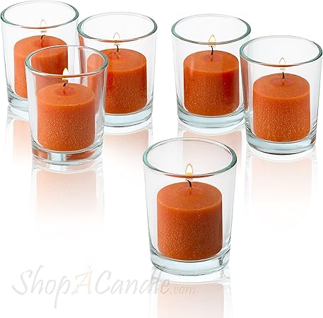 Amazon De Light Runde Kerzenhalter Glas Klar Mit Votiv Kerzen Brennen 10 Stunden Set Von 72 Orange