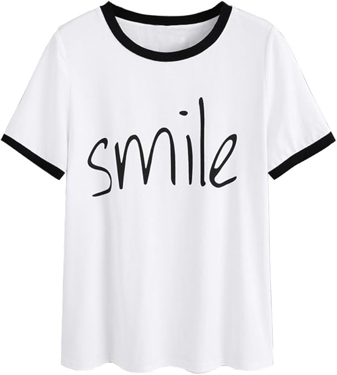 Weant Damen Sommer Bauchfrei T Shirt Madchen Teenager Mode Kurzarm O Neck Lacheln Print Shirts Lose Casual Crop Tunika Oberteile Shirt Bluse Tops Amazon De Bekleidung