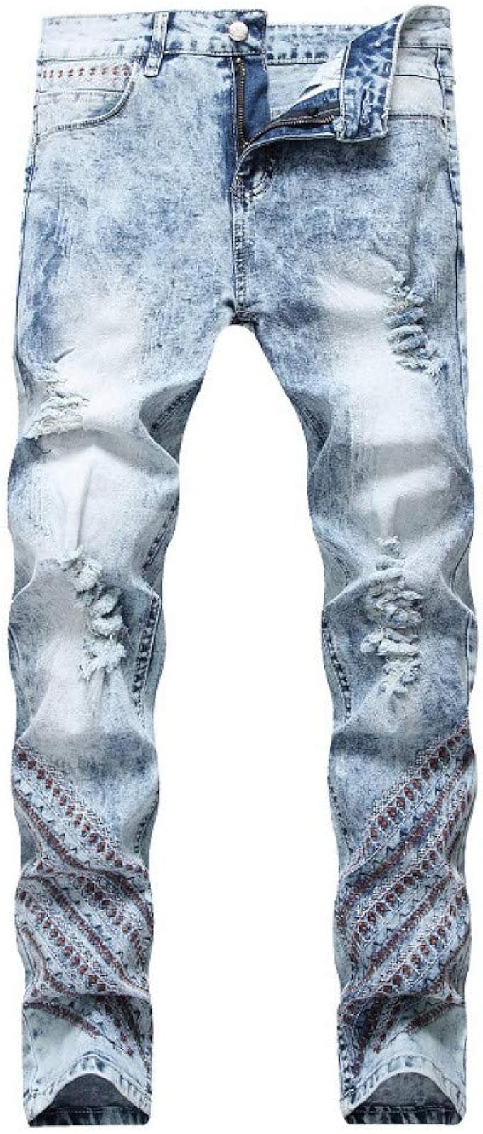 Rlbdnzk Designer Stretch Jeans Herren Straight Slim Hellblau Bestickte Herren Denim Hosen Cotton Shredded Jeans Amazon De Bekleidung