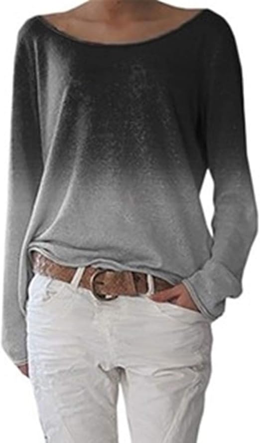 Damen Langarm T Shirt Rundhals Ausschnitt Lose Bluse Langarm Hemd Pullover Oversize Gradient Pullover Sweatshirt Oberteil Tops Amazon De Bekleidung