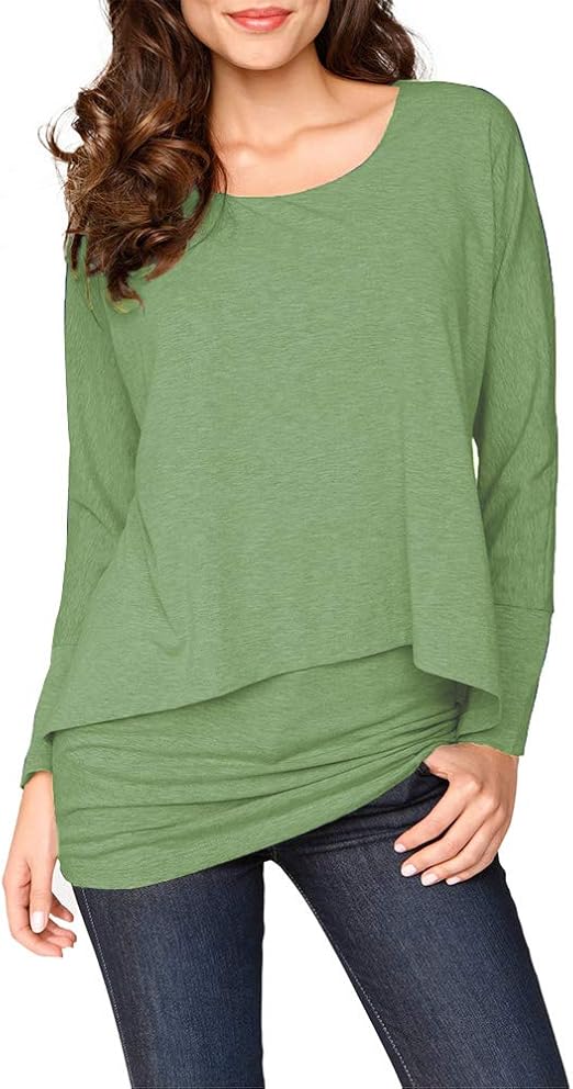 Jusfitsu Damen 2 In 1 Optik Langarmshirt Rundhals Casual Bluse Langarm T Shirt Tops Blau S Sweartshirt Oberteil Shirts Bekleidung Langarmshirt Schnittmuster