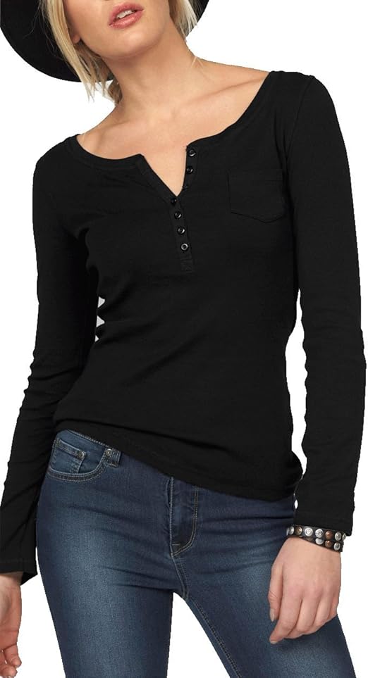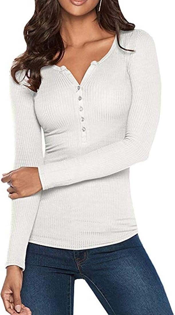 Ybenlover Damen V Ausschnitt Henley T Shirts Langarm Geripp Knopf Basic Oberteile Tee Amazon De Bekleidung