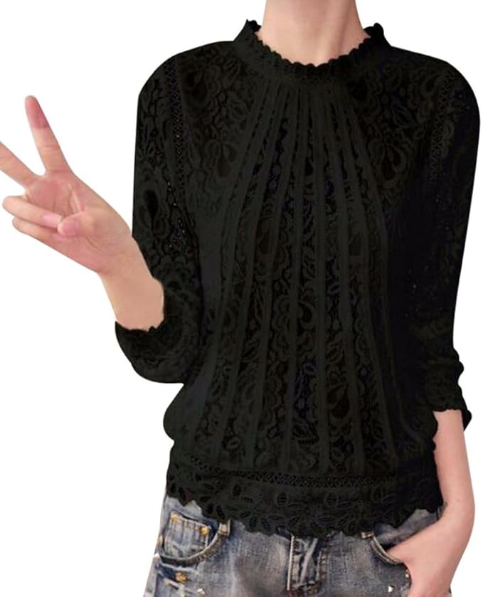 Geblumt Damen Blusen Tops Und Shirts Madels Damen Spitze Top Geblumte Shirt Langarm Durchsichtig Hot Oberteil 34 40 Omnia Ae