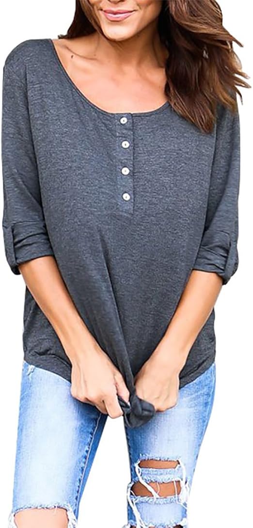 Langarmshirts Pxmoda Damen Henley Shirt Langarm Casual Ripped Scoop Neck Button Basic Oberteile Bekleidung Fbotion Com Br