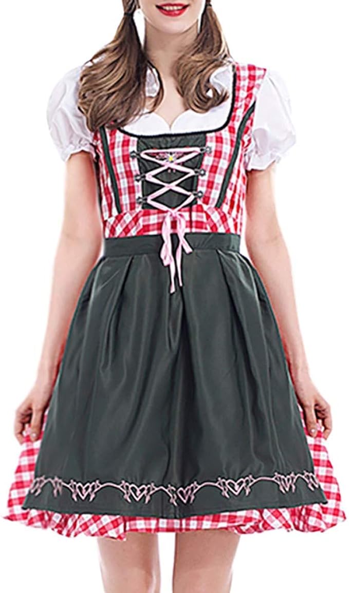 Midi Dirndl Set Damen Trachten Kleid Oktoberfest Stickerei Bluse Churze Kleider Lange Qmber Petticoat Bier Madchen Restaurant Kellner Cosplay Dienstmadchen Tragen Kostum Gitter Halloween Rot L Amazon De Bekleidung