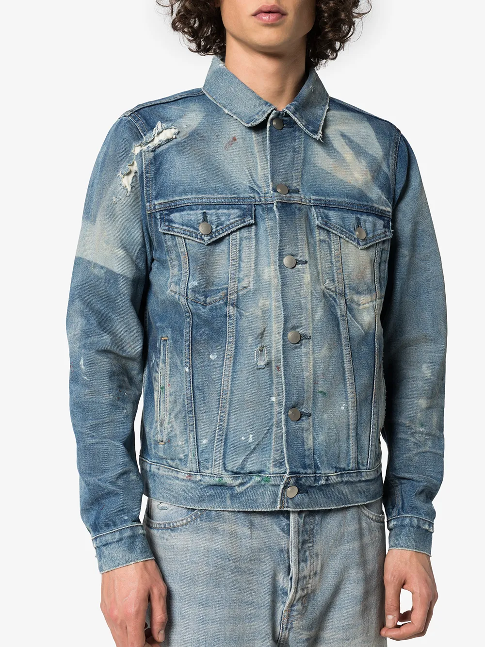 Saint Laurent Men S Blue Distressed Denim Jacket Y8y Apparel Jomashop