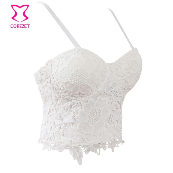 Weiss Cut Out Splicing Blumen Spitze Spaghettitrager Tiefer V Ausschnitt Mode Weste Bra Crop Top Bustier Bh Unterhemd Oberteile