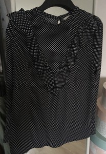 H M Damen Volant Bluse Gr 36 S Weiss Schwarz Gepunktet Shirt Sommer Oberteil Ebay