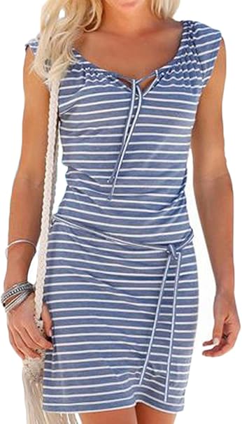 Alieyaes Damen Casual Armellos Strandkleid Sommerkleid Knielang Sportliches Streifenkleid Amazon De Bekleidung