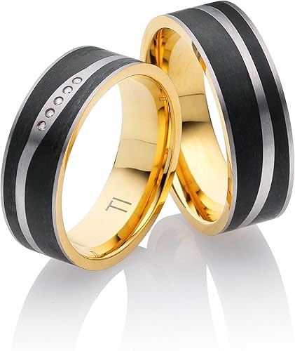 Paar Carbon Trauringe Eheringe In Gelbgold 585 Gelbgold 585 Carbon Einzug Mit Zus 0 16 Ct Brillant Tw Si Von Acredo