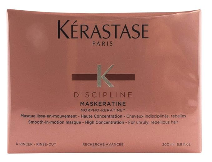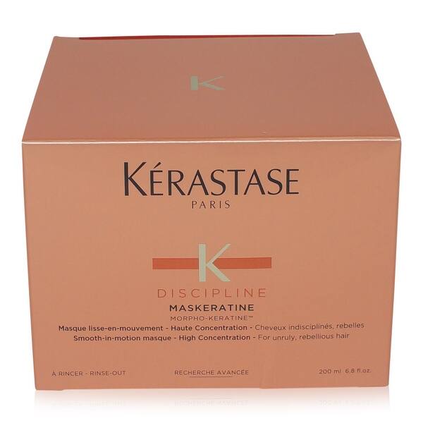 Kerastase unisex Discipline Maskeratine SmoothInMotion Masque For Unruly Hair 67 oz by Kerastase (View All) Item # Price with Coupon $4999. Other Kerastase Maskeratine Morpho Keratine (68 / 169 oz) Unruly Hair Mask Hairsmoothing moisturizing mask for frizzy or curly hair Heat protectant prevents blow dry damage Creates soft hair Controls frizzy hair and smooths flyaways Apply Maskeratine Hair Mask to damp, cleansed hair from roots to ends. Kérastase Paris Discipline Maskeratine SmoothInMotion Masque High Concentration (For Unruly, Rebellious Hair) has the following features Restores inner flexibility and weightlessly disciplines Tames frizz and protects against humidity Contains softening agents to make hair extremely soft to the touch Provides maximum frizz control.